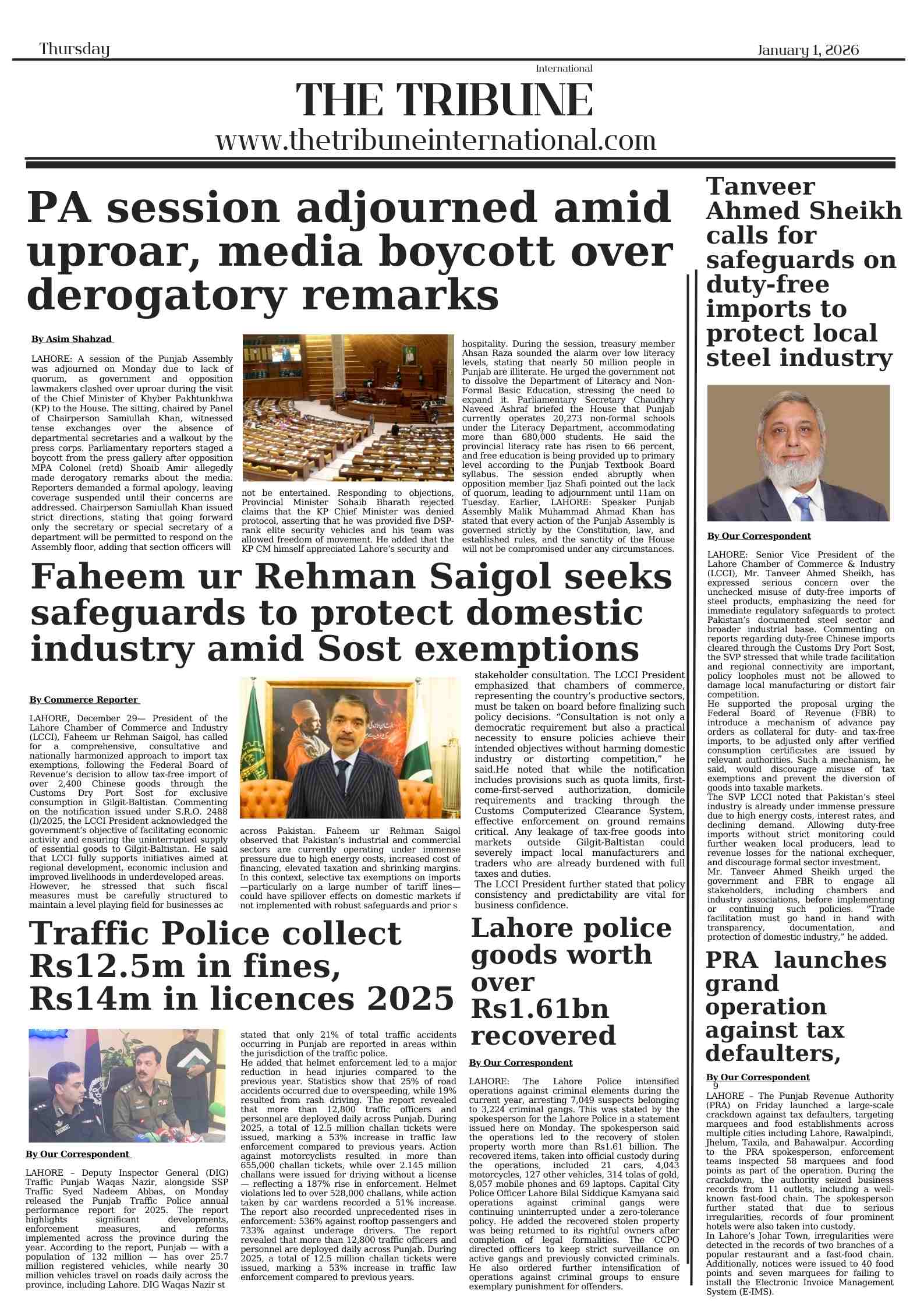 [caption id="attachment_18247" align="alignnone" width="1587"]<img class="size-full wp-image-18247" src="https://thetribuneinternational.com/wp-content/uploads/2026/01/1_20260101_123449_0000.jpg" alt="Epaper January 1, 2026" width="1587" height="2245" /> Epaper January 1, 2026[/caption] <img class="alignnone size-full wp-image-18248" src="https://thetribuneinternational.com/wp-content/uploads/2026/01/3_20260101_123449_0002.jpg" alt="" width="1587" height="2245" /> <img class="alignnone size-full wp-image-18249" src="https://thetribuneinternational.com/wp-content/uploads/2026/01/2_20260101_123449_0001.jpg" alt="" width="1587" height="2245" /> <img class="alignnone size-full wp-image-18250" src="https://thetribuneinternational.com/wp-content/uploads/2026/01/8_20251231_121909_0000.jpg" alt="" width="1587" height="2245" /> <img class="alignnone size-full wp-image-18251" src="https://thetribuneinternational.com/wp-content/uploads/2026/01/12_20260101_123449_0004.jpg" alt="" width="1587" height="2245" /><img class="alignnone size-full wp-image-18260" src="https://thetribuneinternational.com/wp-content/uploads/2026/01/IMG-20260101-WA00501.jpg" alt="" width="794" height="1123" />