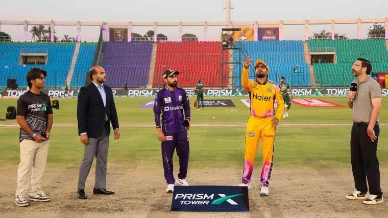 The match is being played at the National Stadium Karachi, where Gladiators captain Saud Shakeel opted to bowl after winning the toss, sending Zalmi, led by Babar Azam, in to bat first.